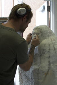 Otter was moving more marble than he had on his first sculpture — entirely by hand — while simultaneously running the foundry, studying anatomy, teaching classes, and working day to night. This was all accomplished in a single semester.